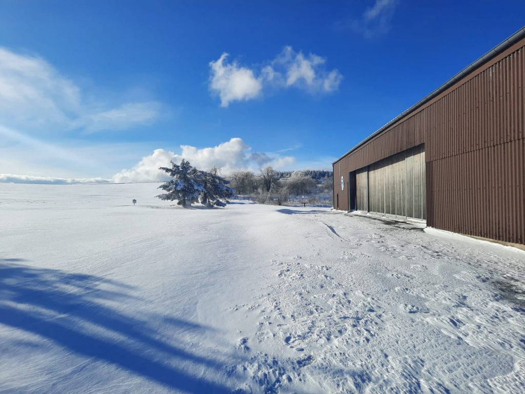 Noch ist Winter auf der Wasserkuppe aber in ca. 6 Wochen geht es wieder los. Aktuell wird unsere Halle noch von Schnee belagert, die ersten Flüge aus der Nähe zeigen das es langsam wieder losgeht.